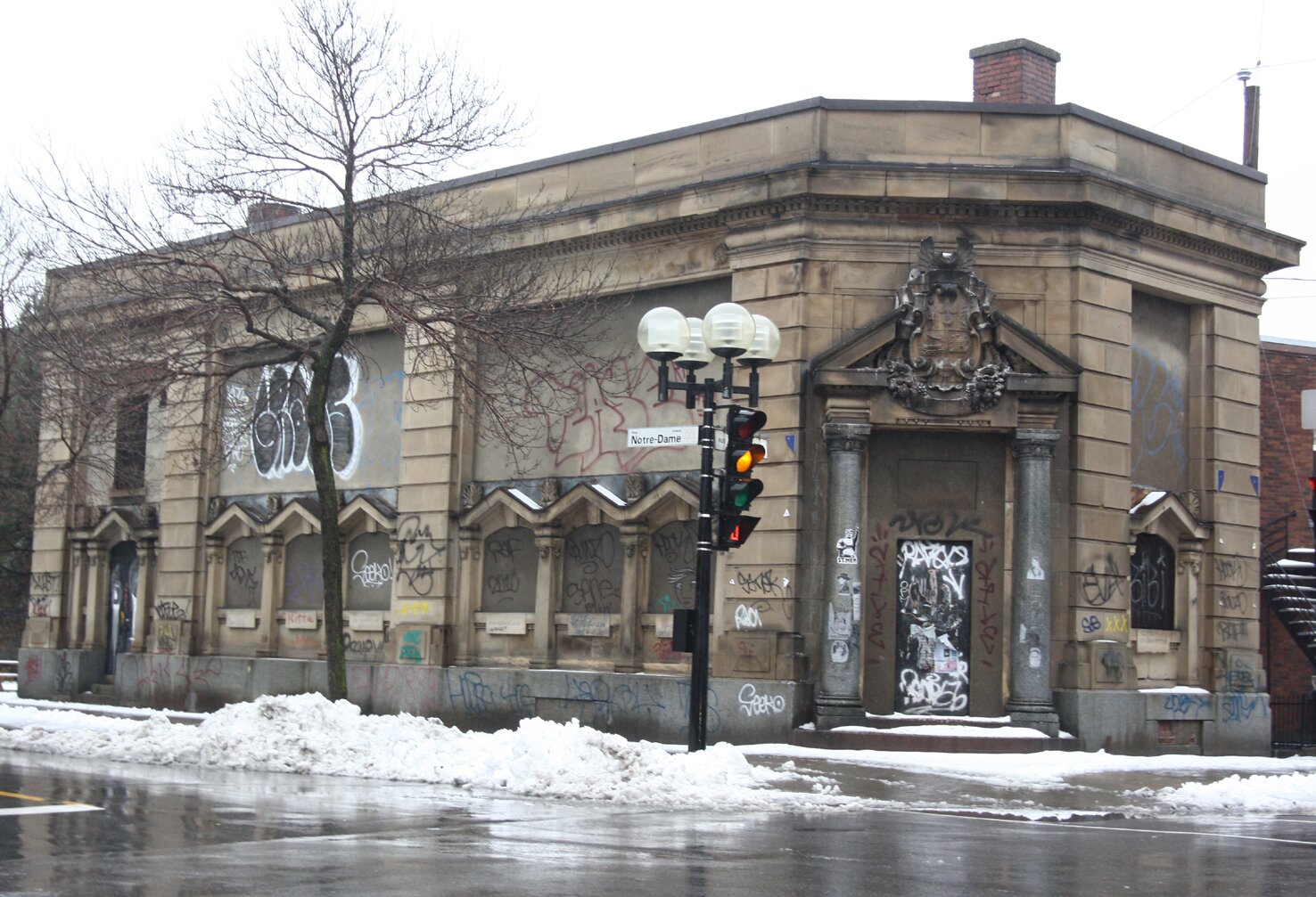 Le nouvel acquéreur du bâtiment de l'ancienne banque Molson situé à l'angle des rues Notre-Dame et Saint-Rémi projetterait d'y aménager un restaurant.